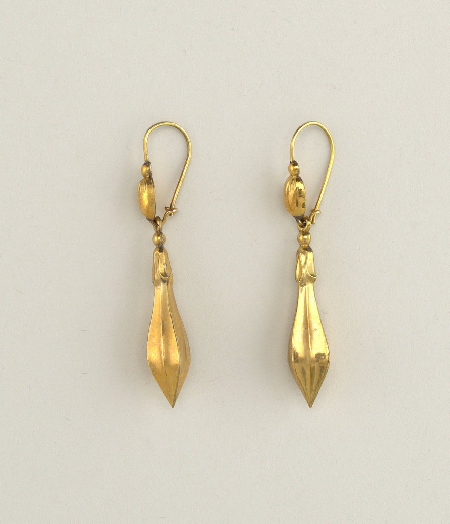Earring; pinchbeck; H x diam.: 5.2 x 1 cm (2 1/16 x 3/8 in.); 1938-80-10-a,b