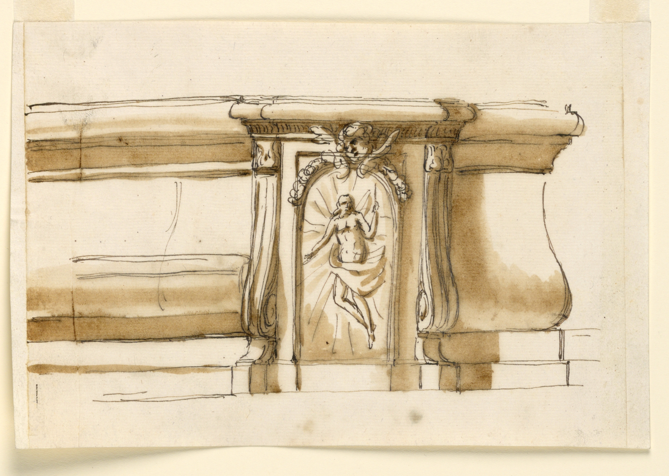 Drawing, Design for a Tabernacle; Designed by Giuseppe Barberi (Italian, 1746–1809); Italy; pen and brown ink, brush and brown wash on lined off-white laid paper; 14.2 x 19.9 cm (5 9/16 x 7 13/16 in.); Museum purchase through gift of various donors and from Eleanor G. Hewitt Fund; 1938-88-1374