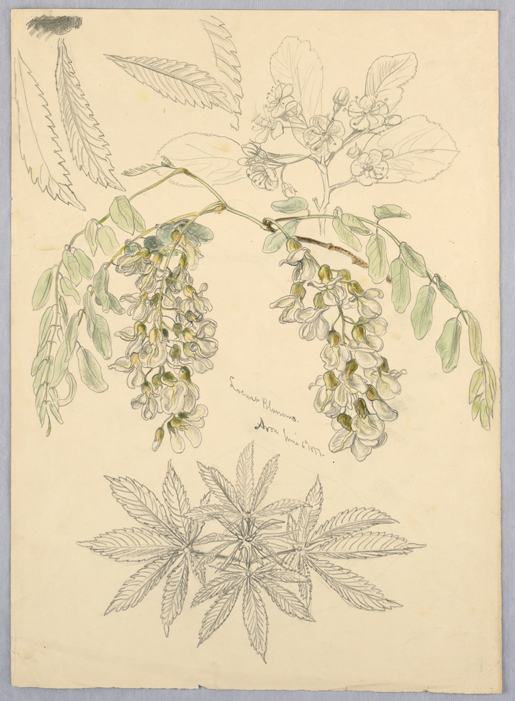 Inscribed in graphite, center: "Locust Blossoms. / Aron June 6th 1877."