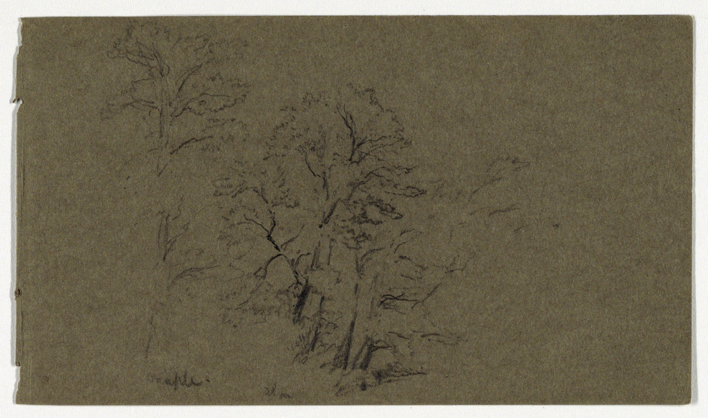 Drawing, Tree Study; Daniel Huntington (American, 1816–1906); USA; graphite on grey paper; 10.1 × 17.5 cm (4 × 6 7/8 in.); Bequest of Erskine Hewitt; 1942-50-913