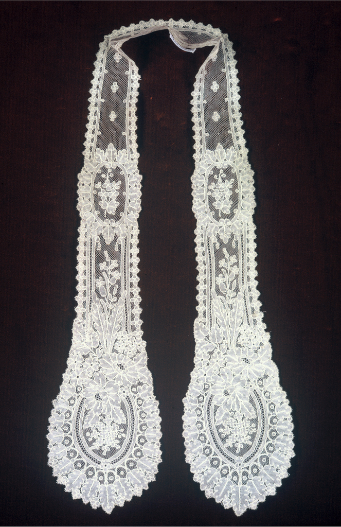 This is a Tie. It is dated mid-19th century and we acquired it in 1946. Its medium is linen and its technique is machine-made lace. It is a part of the Textiles department.