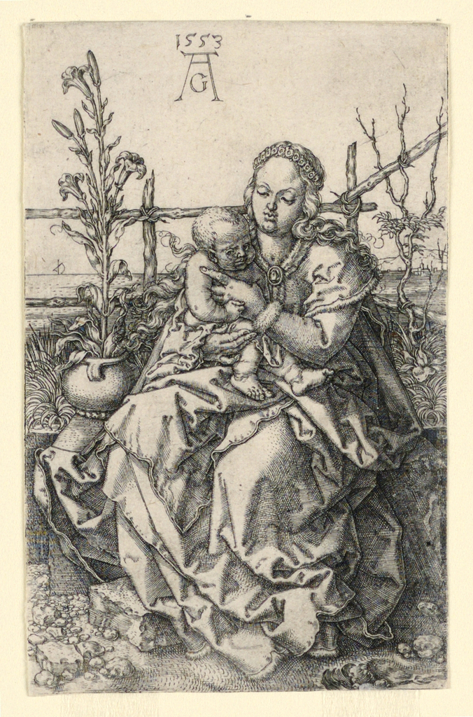 Print, Virgin and Child; Print Maker: Heinrich Aldegrever (German, 1502 - ca. 1561); Germany; engraving on off-white laid paper; Gift of Leo Wallerstein; 1949-29-28