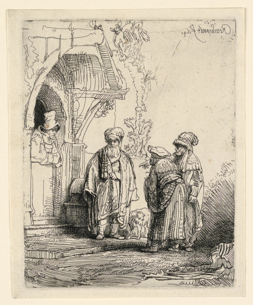 Print, Three Oriental Figures (Jacob and Laban?)