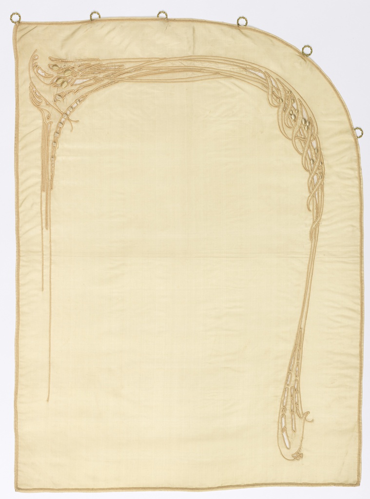 This is a Curtains. It was designed by Hector Guimard. It is dated ca. 1909 and we acquired it in 1949. Its medium is silk, brass rings and its technique is embroidery. It is a part of the Textiles department.
