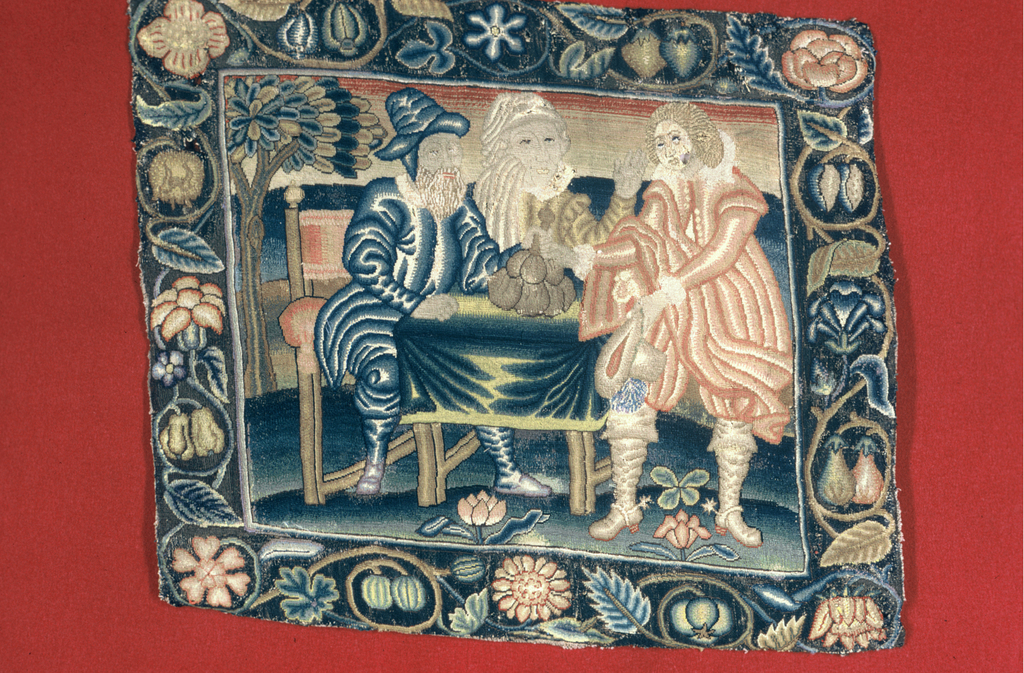 This is a Pillow cover. It is dated 17th century and we acquired it in 1950. Its medium is wool on linen, silk backing and its technique is counted stitch embroidery. It is a part of the Textiles department.