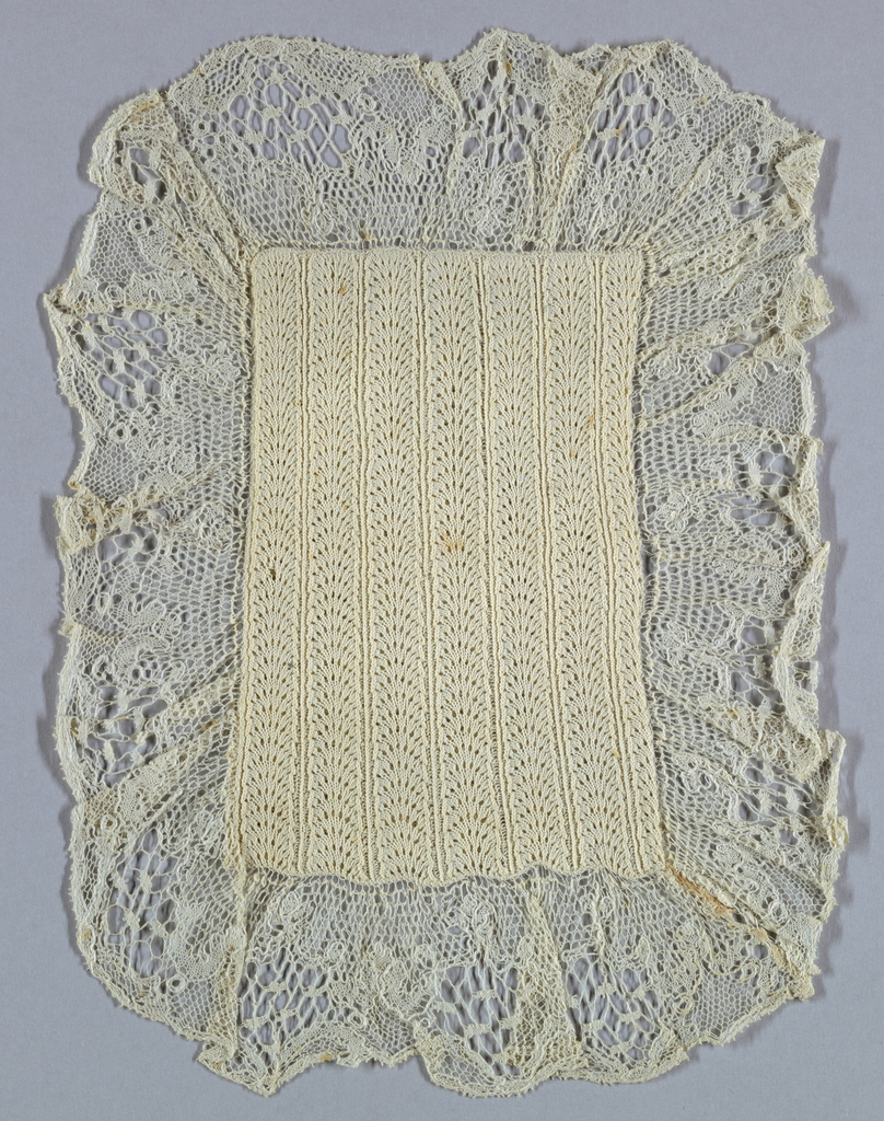 This is a Cover. It is dated 1875–1950 and we acquired it in 1950. Its medium is linen and its technique is knitted. It is a part of the Textiles department.