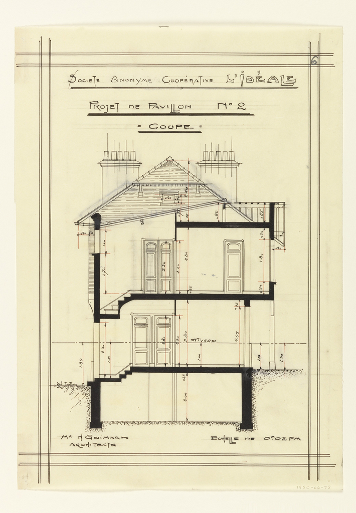 Top in black ink: SOCIETE ANONYME COOPERATIVE L'IDEALE/ PROJET DE PAVILION NO. 2/ COUPE