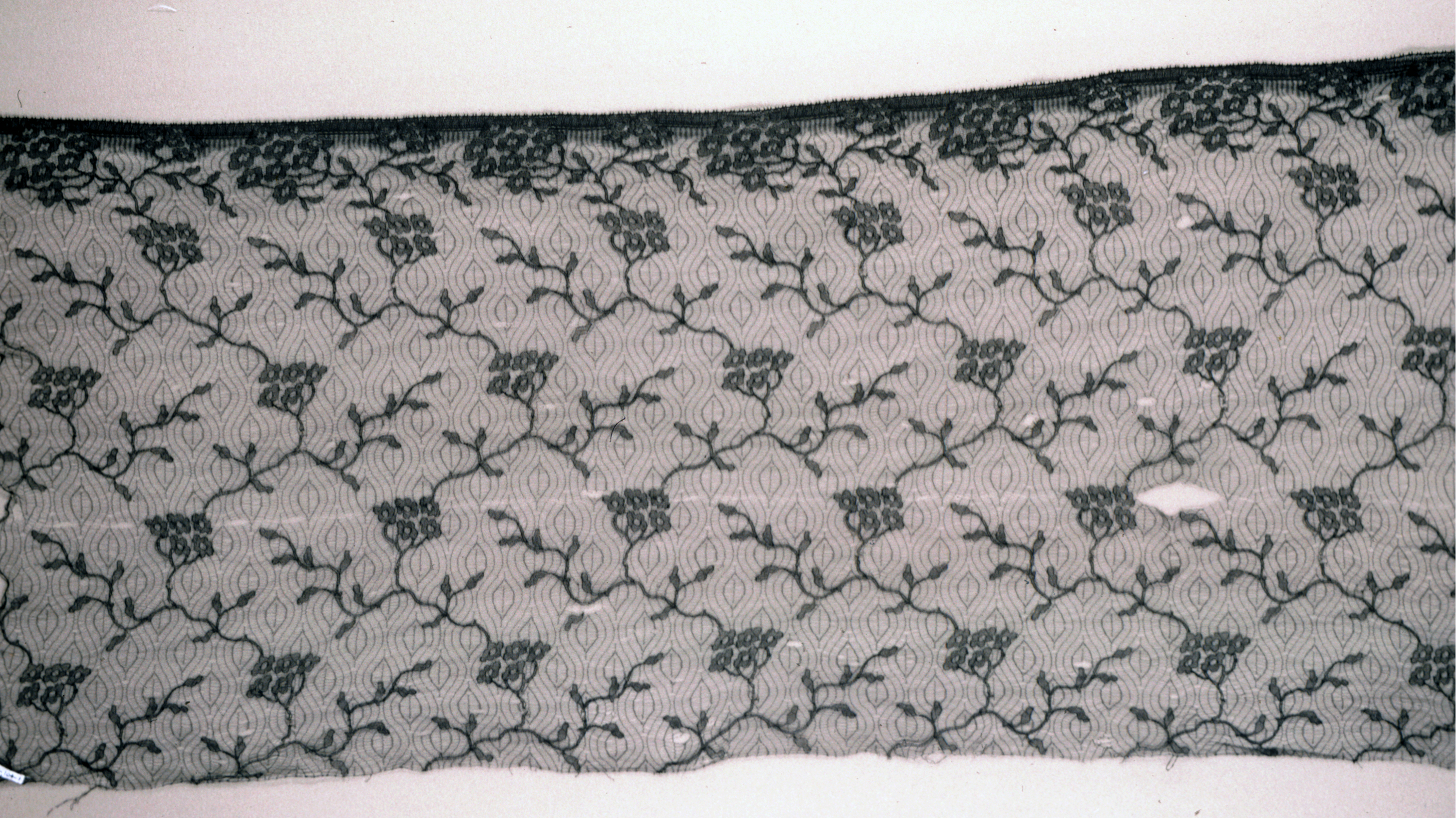 This is a Bonnet veil. It is dated 1800–1850 and we acquired it in 1951. Its medium is silk and its technique is machine made. It is a part of the Textiles department.
