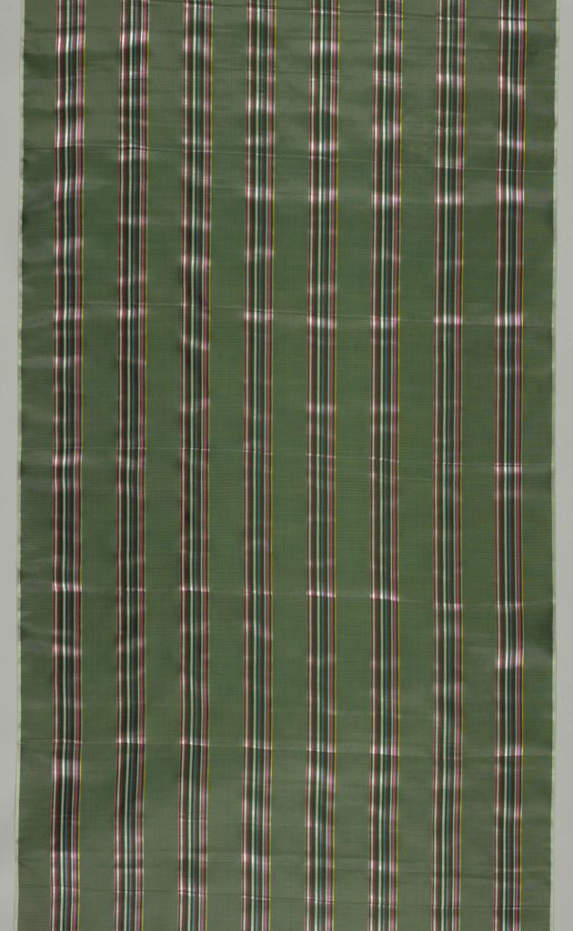 This is a Textile. It is dated 1930 and we acquired it in 1951. Its medium is silk and its technique is plain weave with warp twill stripes. It is a part of the Textiles department.