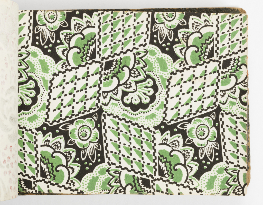Sample Book, Dessins Nouveauté; Manufactured by Gillet et Fils; France; block-printed and dyed; H x W: 16.5 x 24.5 cm (6 1/2 x 9 5/8 in.); Gift of Martin Fabrics Corporation; 1951-163-1-1/156