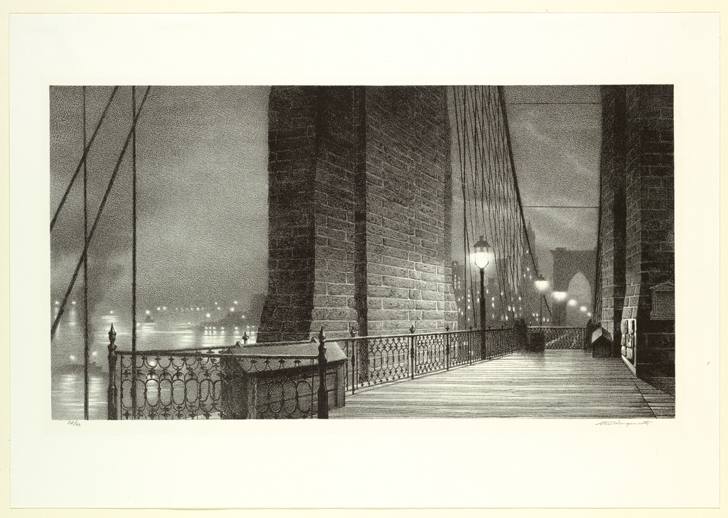 See more objects with the tag artists, art, bridges, printmakers, cities, Brooklyn, Brooklyn Bridge.