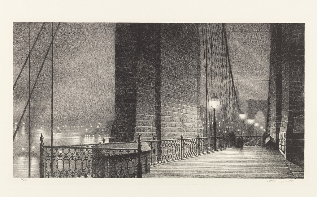 Print, Manhattan Gateway; Stow Wengenroth (American, 1906–1978); lithograph on white paper; 36.2 × 52.1 cm (14 1/4 × 20 1/2 in.); Museum purchase through gift of Eleanor G. Hewitt; 1951-43-7