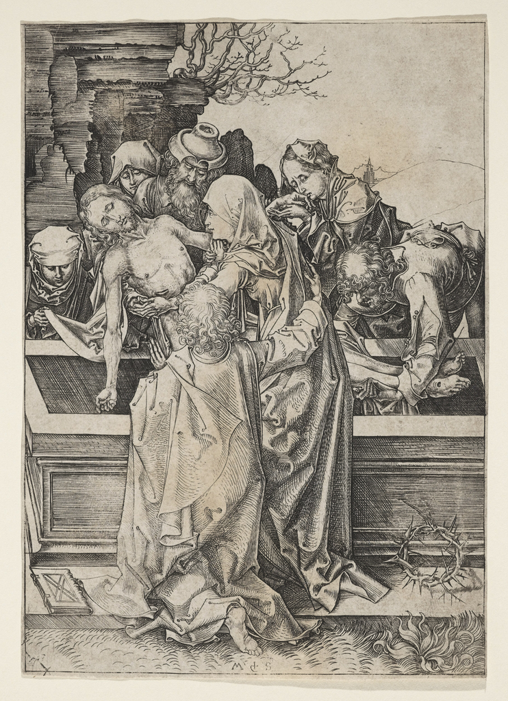 Print, The Entombment; Martin Schongauer (German, 1450–91); Germany; engraving on laid paper; 16.4 x 11.6 cm (6 7/16 x 4 9/16 in.); 1952-156-41