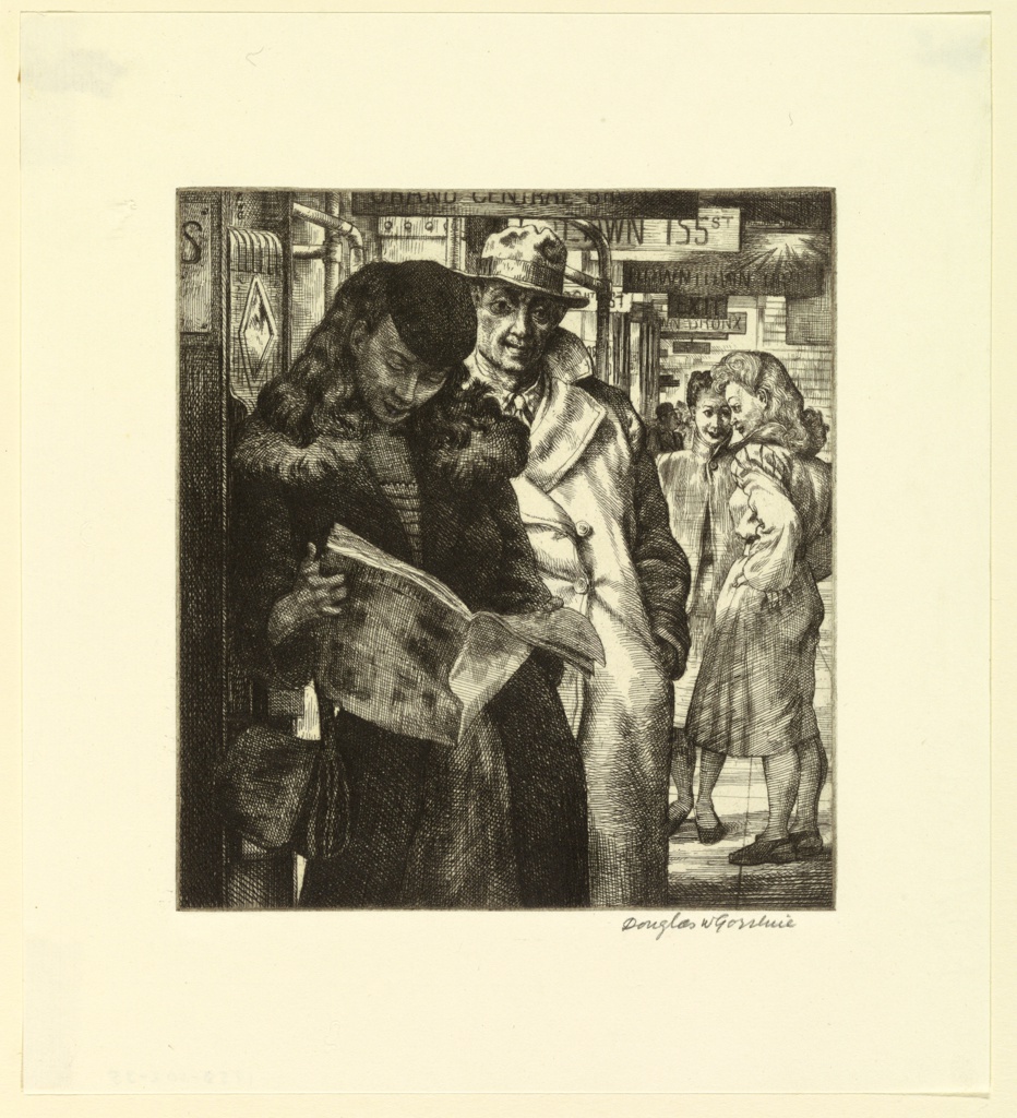 This is a Print. It was created by Douglas Warner Gorsline. It is dated 1948 and we acquired it in 1953. Its medium is etching in black ink on cream paper. It is a part of the Drawings, Prints, and Graphic Design department.