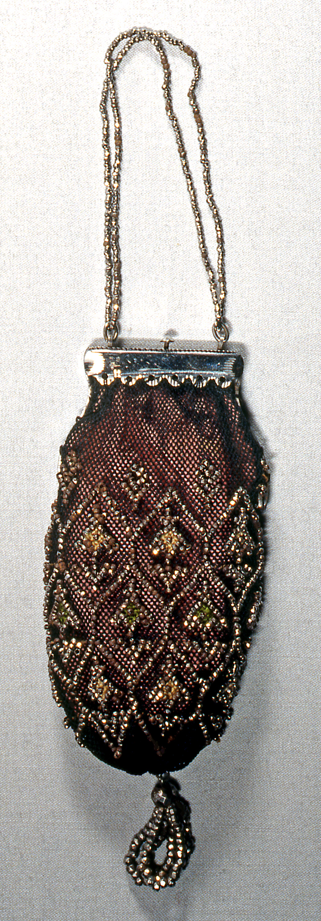 Purse; silk, metallic beads; H x W: 12 x 5.1 cm (4 3/4 x 2 in.); Gift of Mrs. Albert Blum; 1953-106-11