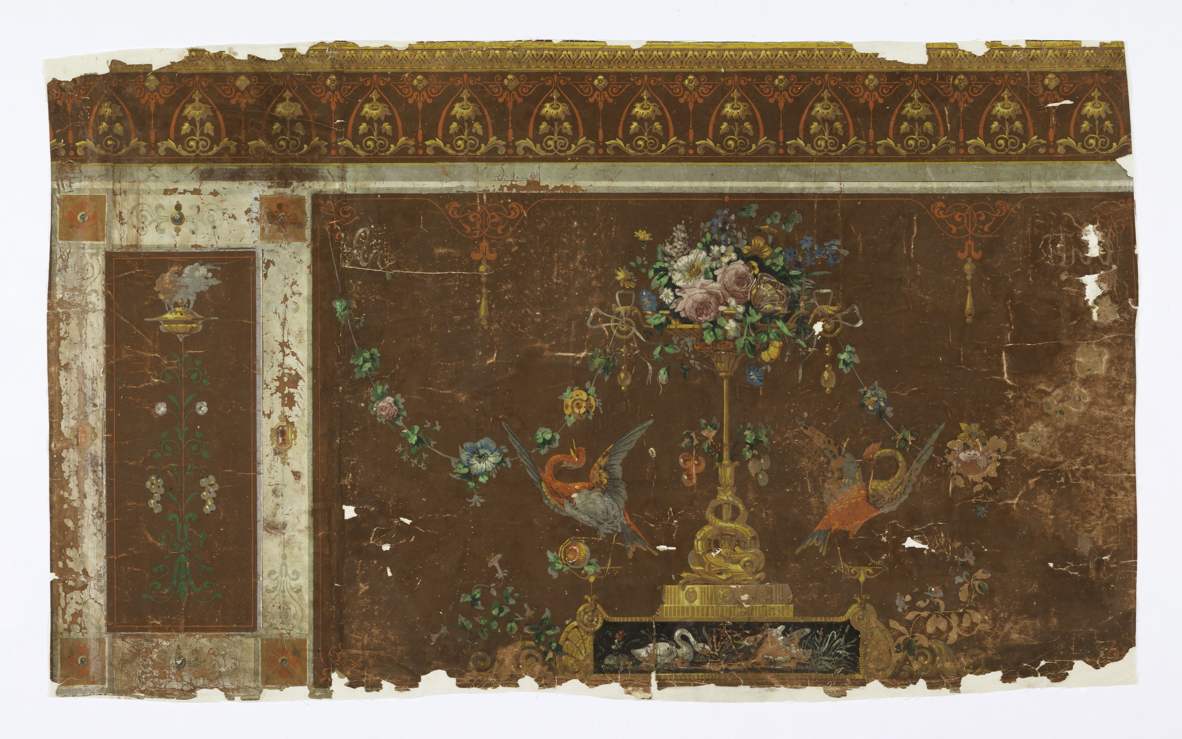 This is a frieze. It is dated 1785–95 and we acquired it in 1953. Its medium is block printed on handmade paper. It is a part of the Wallcoverings department.