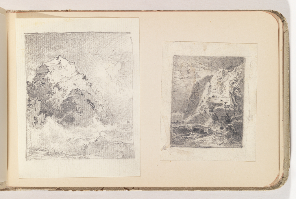 Album Page, Sun Striking High Cliffs over Sea; William Trost Richards (American, 1833–1905); USA; graphite on white wove paper, lined; 6.5 x 8.2 cm (2 9/16 x 3 1/4 in.), irregular; Gift of the National Academy of Design from the Mrs. William T. Brewster Bequest; 1953-179-85-22