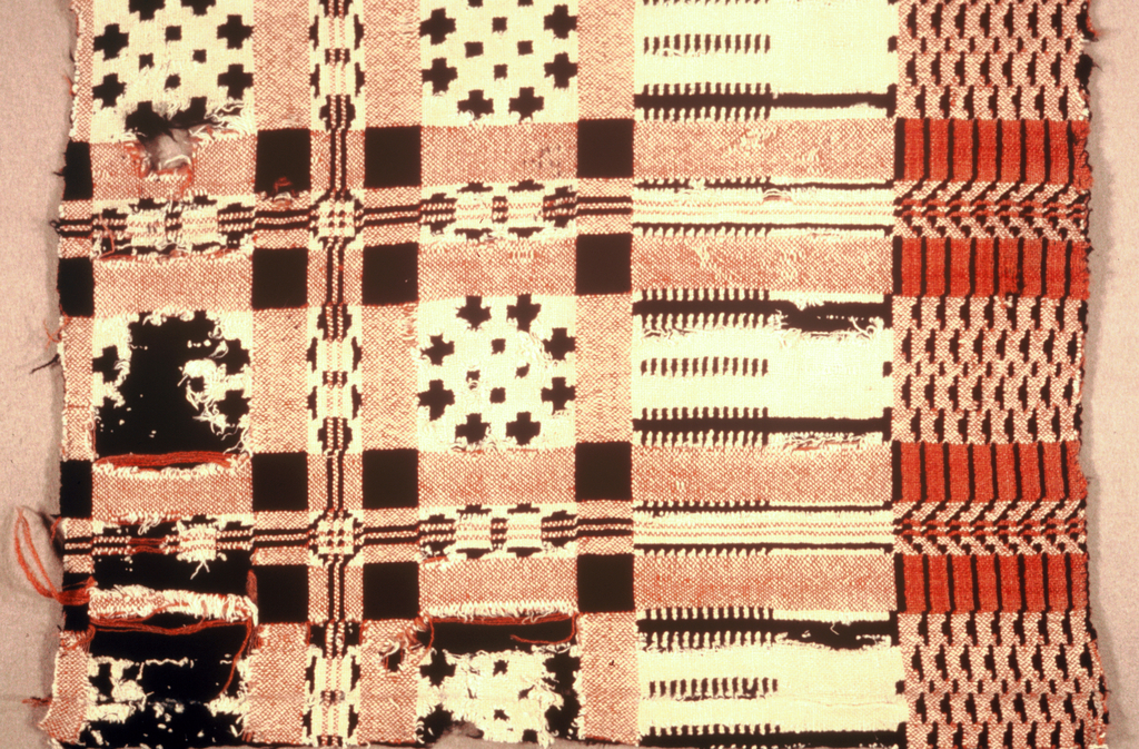 Coverlet Fragment (USA); wool, cotton; H x W: 17.5 x 45 cm (6 7/8 x 17 11/16 in.); 1953-218-69