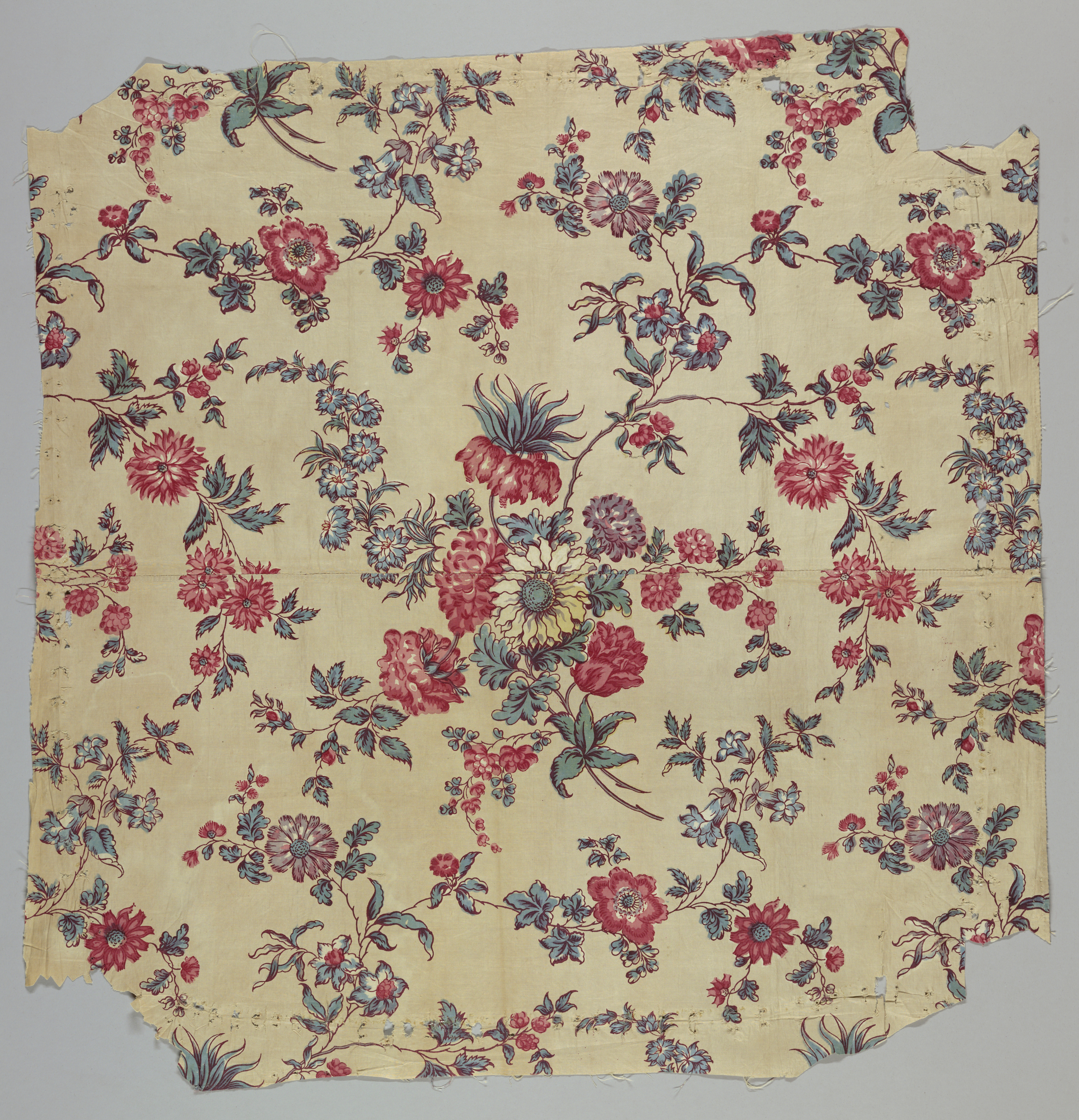 This is a Textile. It is dated late 18th–early 19th century and we acquired it in 1953. Its medium is cotton and its technique is roller and block printed on plain weave. It is a part of the Textiles department.