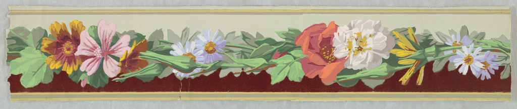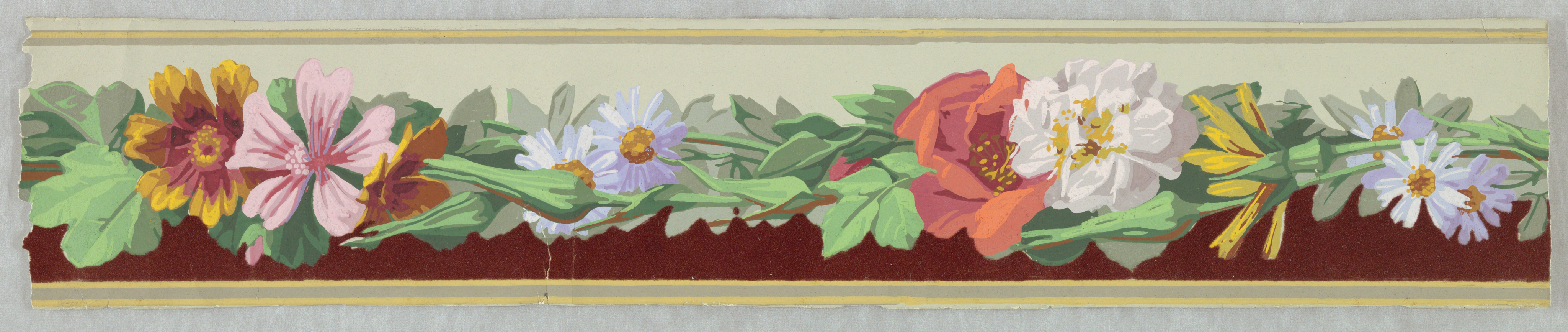 This is a Border. It is dated 1860 and we acquired it in 1954. Its medium is block-printed, flocked. It is a part of the Wallcoverings department.
