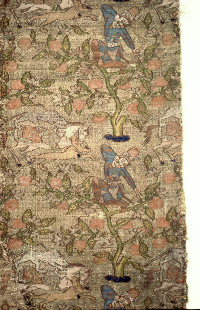 This is a Textile. It is dated 17th century and we acquired it in 1954. Its medium is silk, metallic thread and its technique is woven. It is a part of the Textiles department.