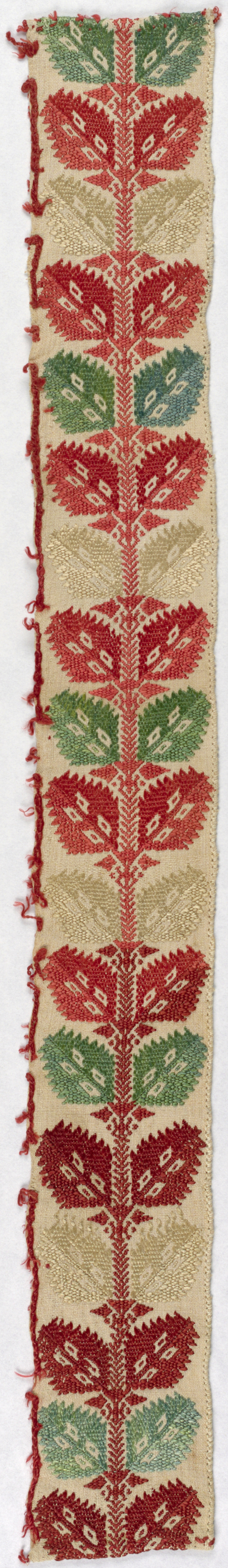 Border (Greece); silk embroidery on linen foundation; H x W: 7 x 61 cm (2 3/4 x 24 in.); Gift of Provident Securities Company from the Estate of Mr. and Mrs. William H. Crocker; 1955-133-32