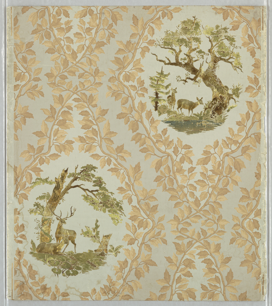 Sidewall (Germany); Manufactured by Einbeck Herting; block-printed, stamped foil, continuous paper; H x W: 56 x 49 cm (22 1/16 x 19 5/16 in.); Gift of Deutsches Tapetenmuseum; 1955-51-10