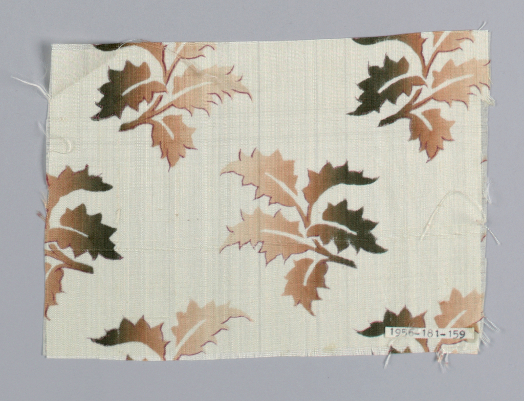 This is a Sample. We acquired it in 1956. Its medium is silk and its technique is printed. It is a part of the Textiles department.