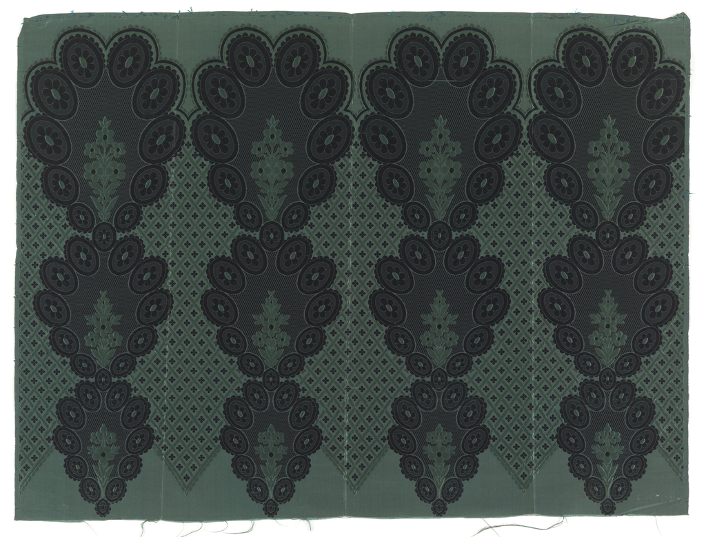 This is a Textile. It is dated 1825–1850 and we acquired it in 1956. Its medium is silk and its technique is printed by engraved roller on plain weave. It is a part of the Textiles department.