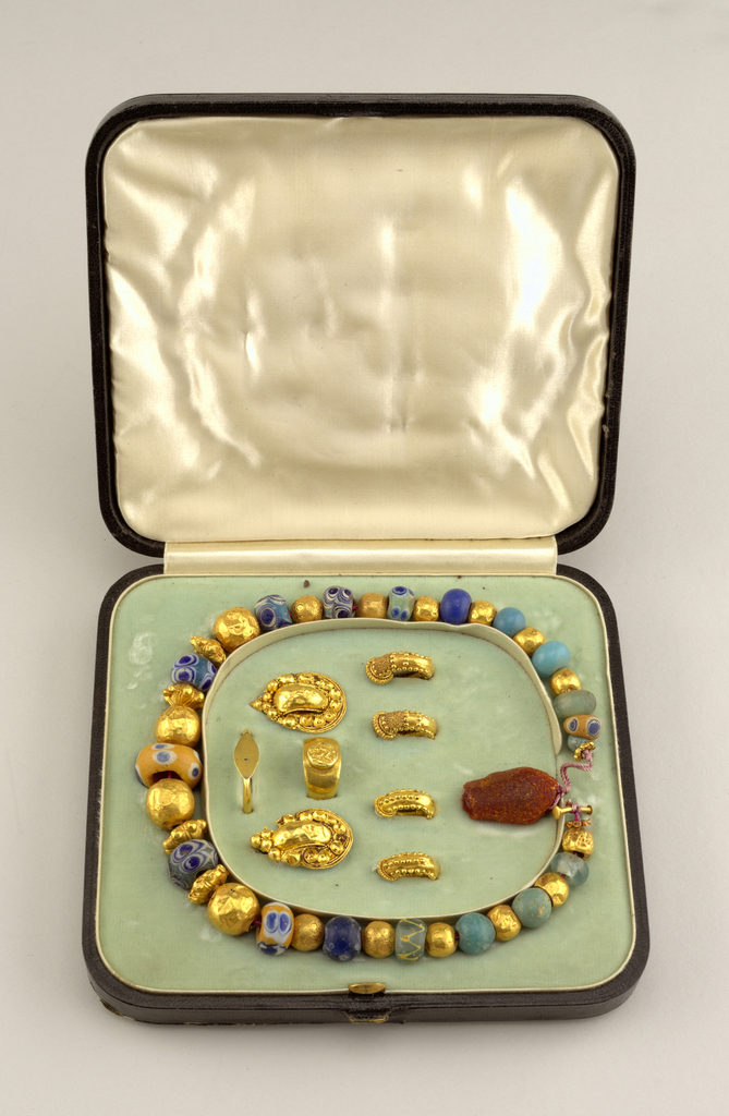 This is a Earring. We acquired it in 1956. Its medium is gold. It is a part of the Product Design and Decorative Arts department.