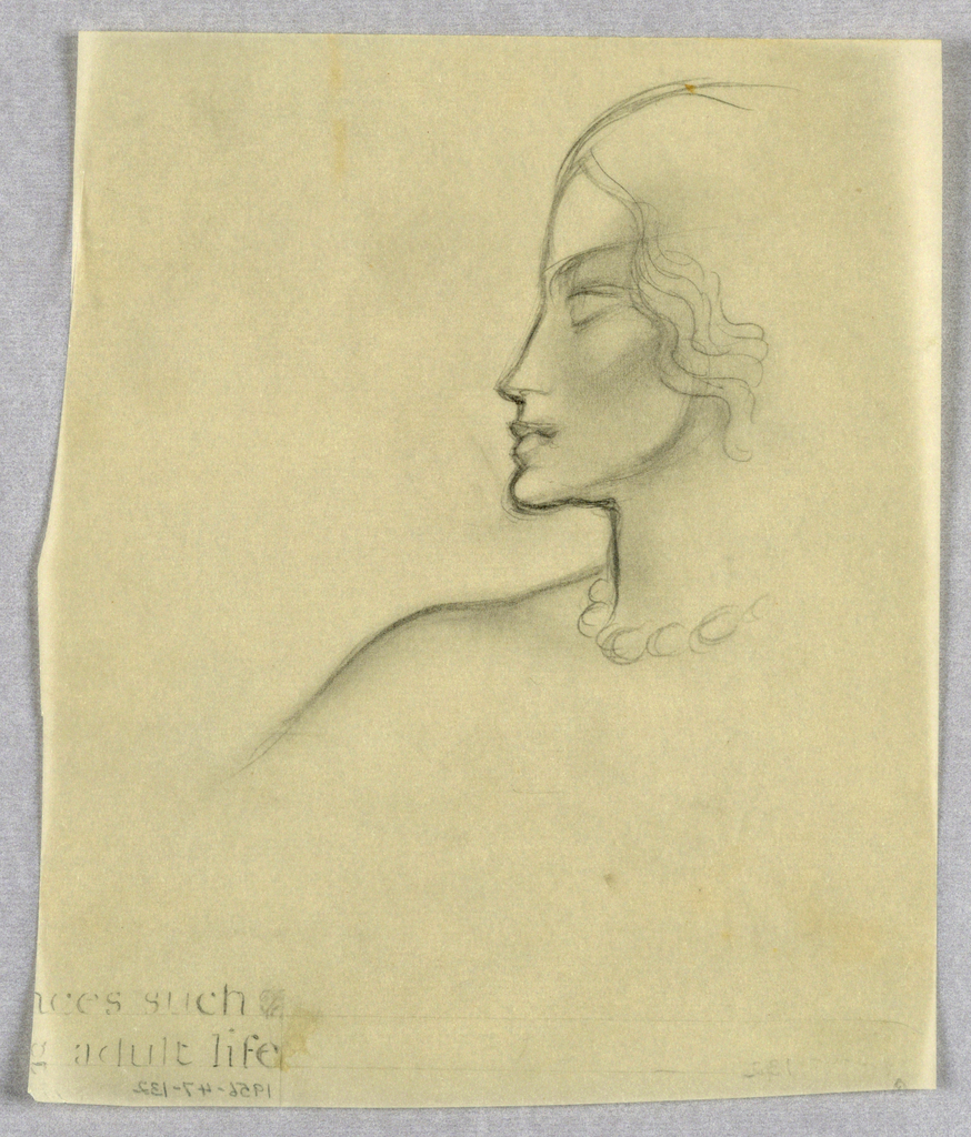 Drawing, Female Head, Left Profile; Designed by Gustav Boerg Jensen (Danish, 1898 – 1954); USA; 20 x 16.9 cm (7 7/8 x 6 5/8 in.); Gift of Ellen Gustav Jensen; 1956-47-132