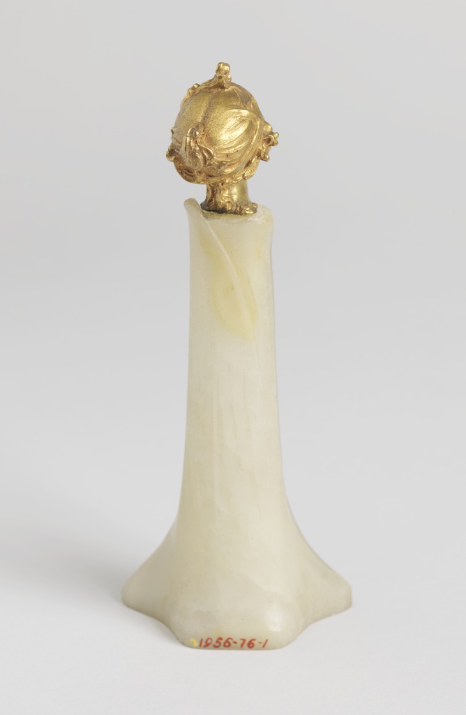 Paperweight, from Madame Guimard's Desk at the Hôtel Guimard, Paris, France Paperweight; Designed by Hector Guimard ((French, 1867–1942)); Executor: Unknown; France; alabaster, bronze, gold; H x W x D: 15.1 x 6.3 x 3 cm (5 15/16 x 2 1/2 x 1 3/16 in.); Gift of Mme. Hector Guimard; 1956-76-1