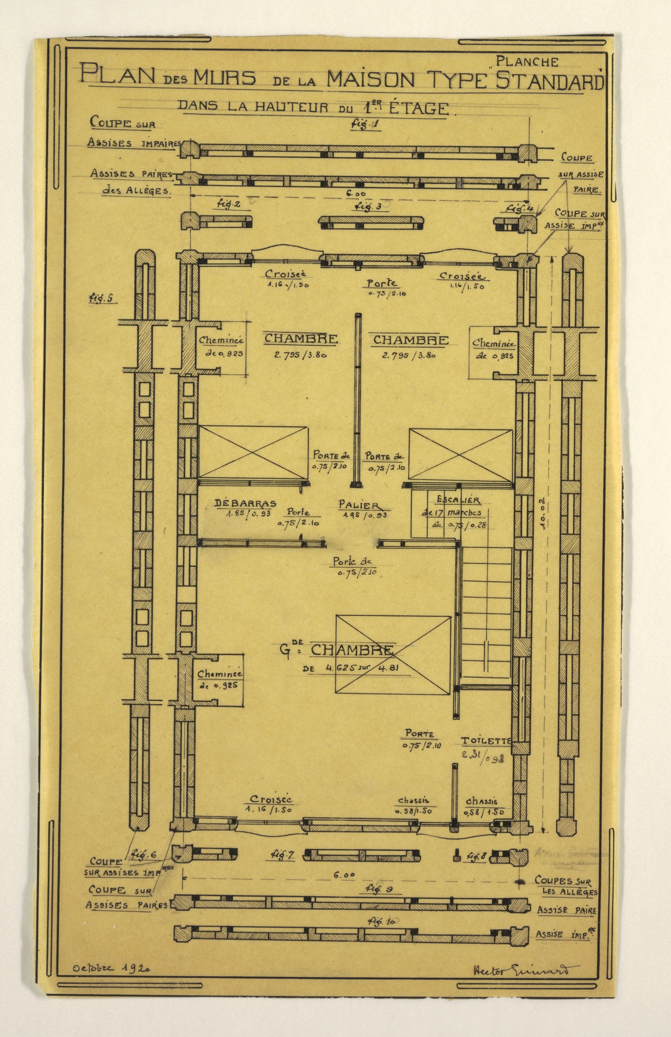 <ref name=CH>{{cite web |url=https://www-4.collection.cooperhewitt.org/objects/18410945/ |title=Drawing, Plate Illustrating Standard House (Structural) Wall Plan (“Plan des Murs de la Maison Type Standard”) |author=Cooper Hewitt, Smithsonian Design Museum |accessdate=19 December 2025 |publisher=Smithsonian Institution}}</ref>