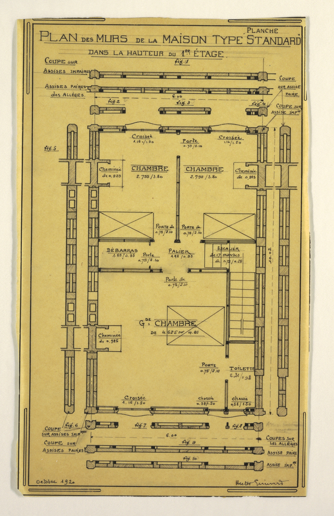 Inscribed in black ink, lower left: octobre 1920; upper margin: PLAN DES MURS DE LA MAISON TYPE STANDARD/ DANS LA HAUTEUR DU 1e ETAGE