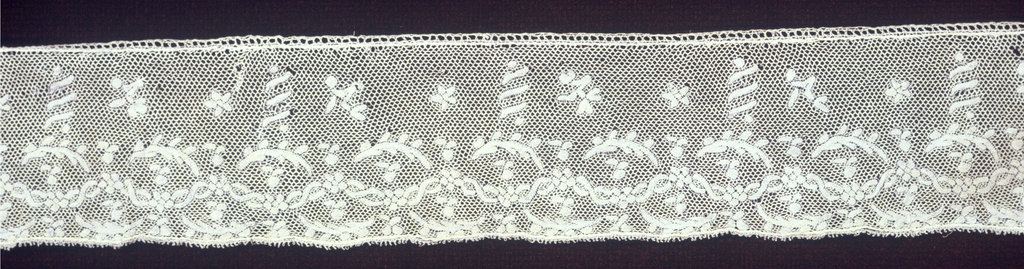 This is a Edge . It is dated 18th century and we acquired it in 1957. Its medium is medium: and its technique is bobbin lace, valencienne ground. It is a part of the Textiles department.