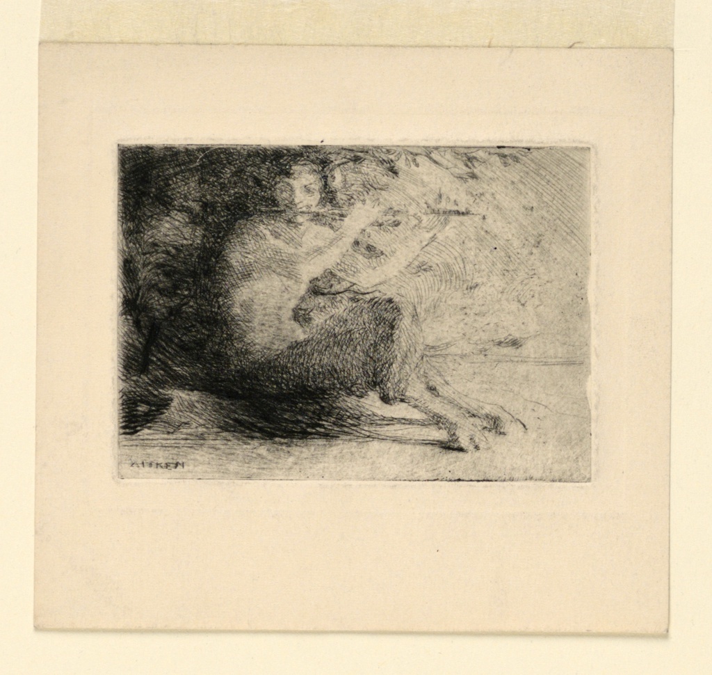 This is a Print. It was created by Robert Ingersoll Aitken. It is dated before 1928 and we acquired it in 1957. Its medium is etching in black ink on paper. It is a part of the Drawings, Prints, and Graphic Design department.