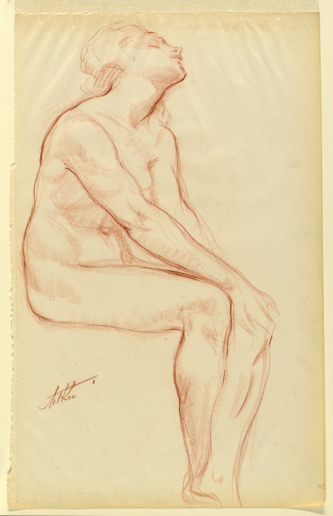 Drawing, Seated Female Nude; Robert Ingersoll Aitken (American, 1878–1949); USA; red chalk on paper; 42.7 × 27.2 cm (16 13/16 × 10 11/16 in.); Gift of Mrs. Robert I. Aitken; 1957-122-23