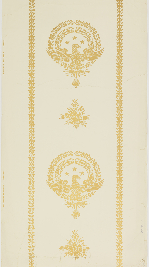 Sidewall, Federal; Manufactured by Renverne Corporation; USA; screen printed paper; H x W x D (a): 159 × 75.5 cm (5 ft. 2 5/8 in. × 29 3/4 in.) L x W (b): 68.6 × 75.6 cm (27 in. × 29 3/4 in.); Gift of Renverne Coproration; 1957-178-1-a,b