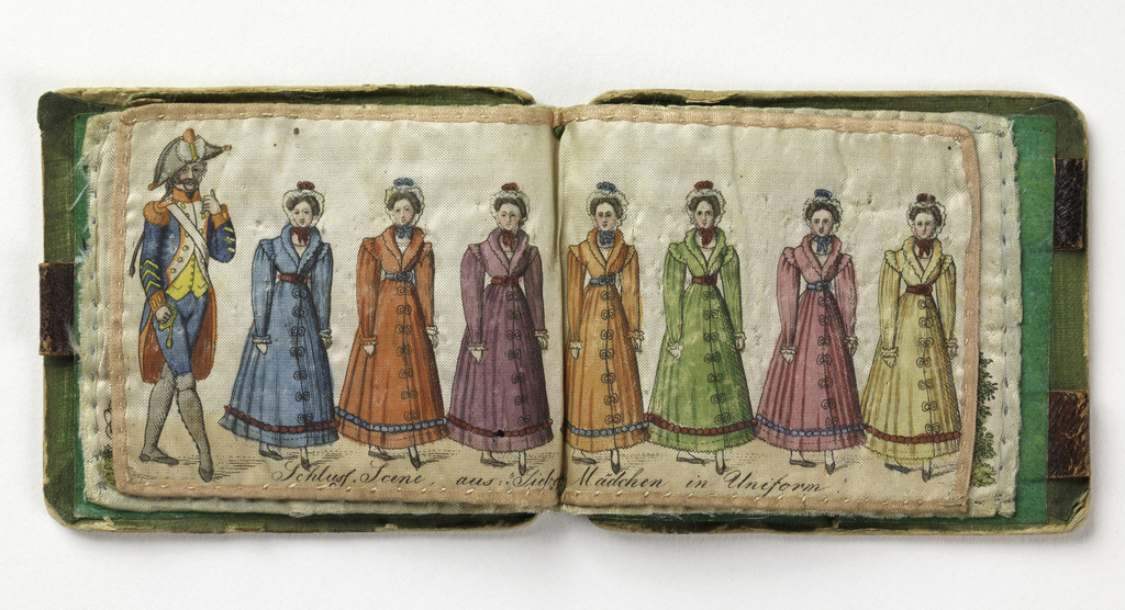 Needle Case (Germany); label: painted cardboard covers, silk leaves lined with wool; H x W: 8.3 x 7 cm (3 1/4 x 2 3/4 in.); Gift of the estate of Mrs. Lathrop Colgate Harper; 1957-180-45