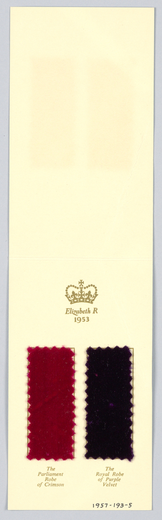 Coronation Samples (England); Probably Warner Fabrics; silk; 1957-193-5