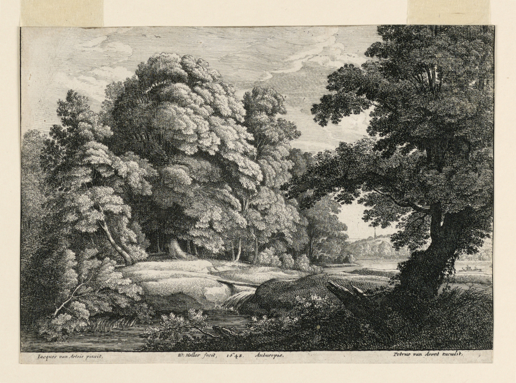This is a Print. It was print maker: Wenceslaus Hollar and after Jacques d' Arthois. It is dated 1648 and we acquired it in 1957. Its medium is etching on paper. It is a part of the Drawings, Prints, and Graphic Design department.