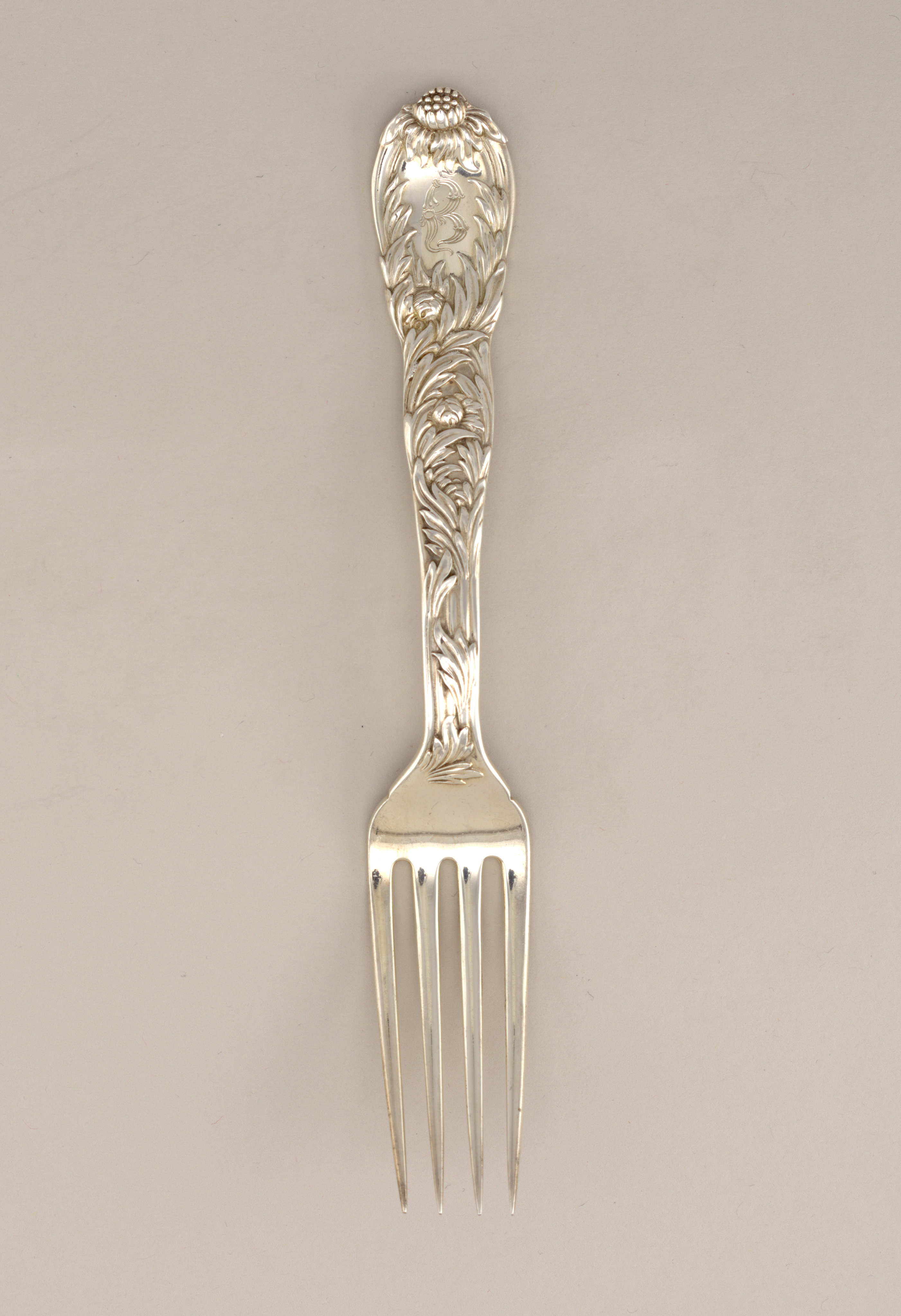 This is a fork. It was designed by Charles Grosjean and manufactured by Tiffany and Co.. It is dated ca. 1880 and we acquired it in 1957. Its medium is silver. It is a part of the Product Design and Decorative Arts department.