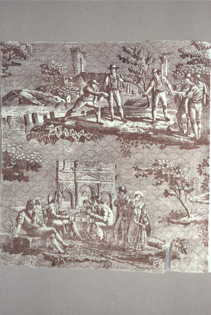 This is a Textile. It is dated 1820–1825 and we acquired it in 1957. Its medium is cotton and its technique is copper plate printed. It is a part of the Textiles department.