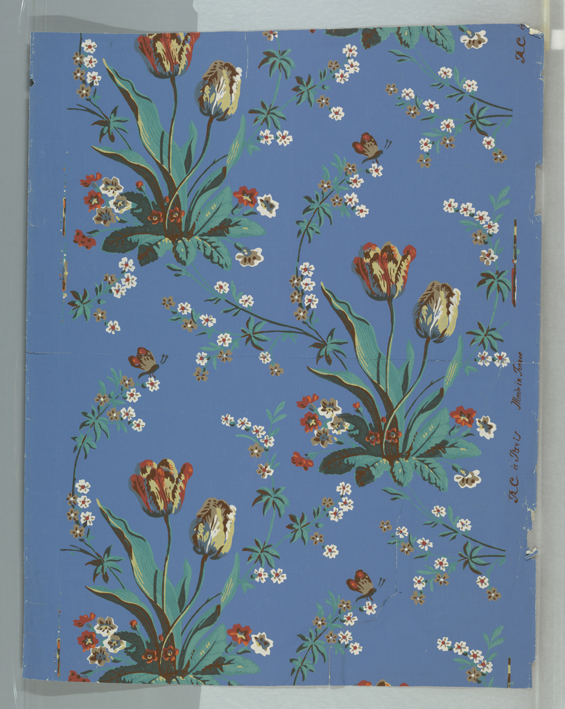 Sidewall, Tulips, Lovely Tulips; Distributed by Nancy McClelland (American, b. 1877–1959); France; block-printed on continuous paper; 82.5 x 62.5 cm (32 1/2 x 24 5/8 in.); Gift of Jessup, Inc.; 1958-115-37-a,b