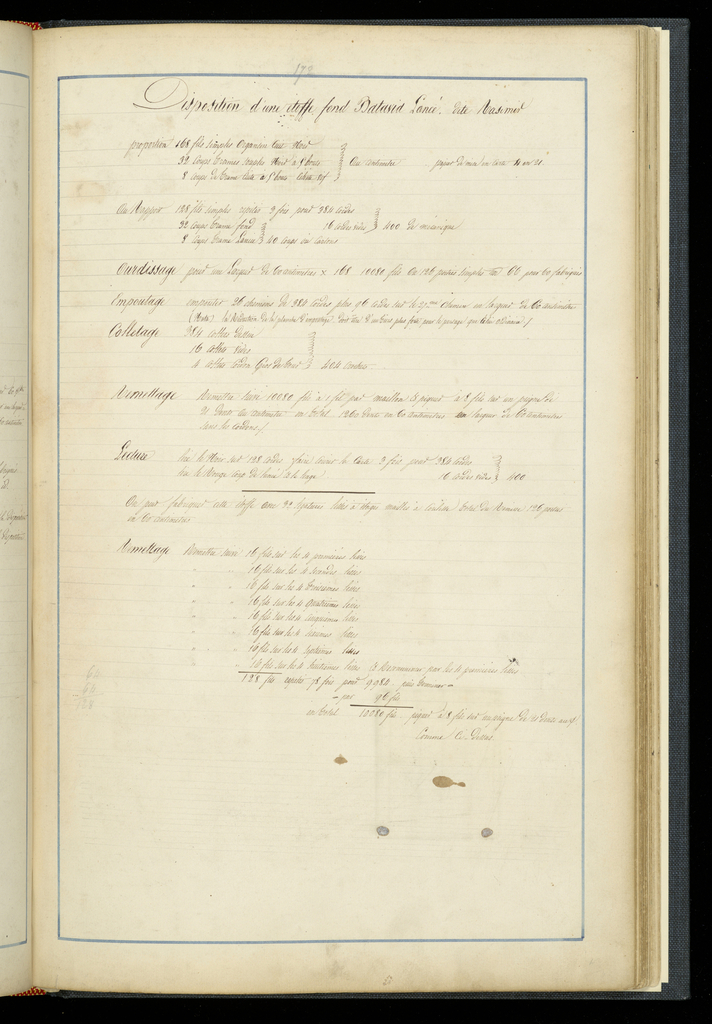 Ce livre provenant de la bibliothèque de M. Gallet, ancien dessinateur et professeur de théorie de fabrique, mort en 1872 ou 1873. Il a du être écrit par un élève de M. Gallet entre 1850 et 1860.