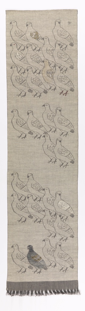 Hanging, The Pigeons; Designed by Dora Jung (Finnish, 1906–1980); Finland; linen; H x W: 210 x 52.5 cm (6 ft. 10 11/16 in. x 20 11/16 in.); Museum purchase from Au Panier Fleuri Fund; 1959-143-1