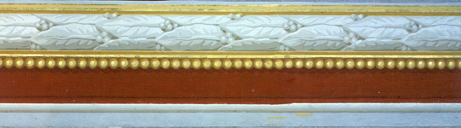 This is a Border. It is dated 1850 and we acquired it in 1959. Its medium is block-printed paper, flocked. It is a part of the Wallcoverings department.