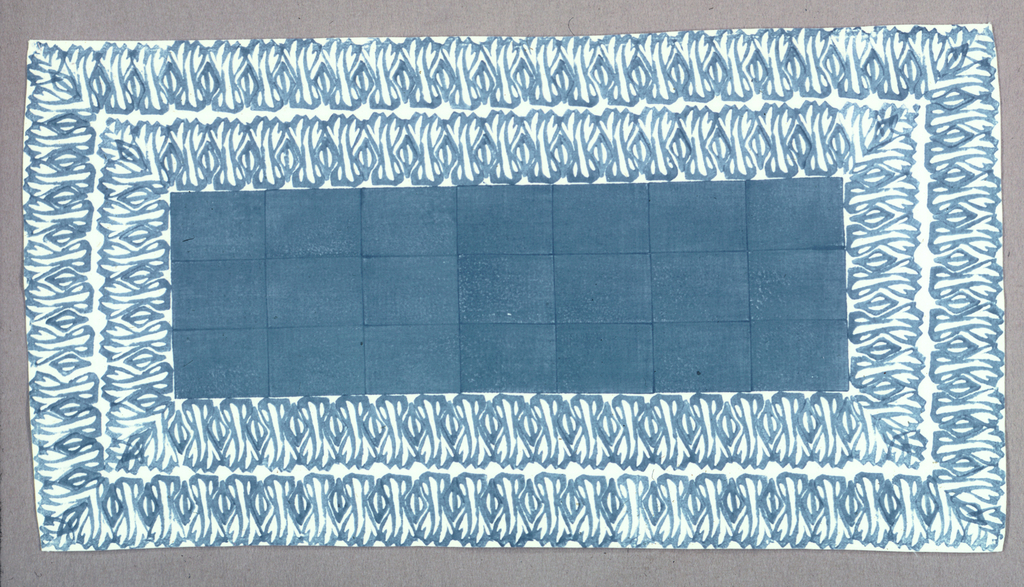 This is a Textile. It is dated 1959 and we acquired it in 1959. Its medium is cotton and its technique is block printed by hand. It is a part of the Textiles department.