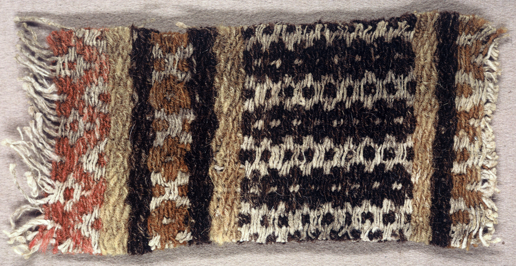 This is a Fragment. It is dated 19th century and we acquired it in 1959. Its medium is wool, linen and its technique is complementary weft. It is a part of the Textiles department.