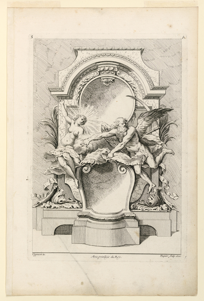 Inscribed, upper left: "3"; upper right: "A"; lower left: "oppenort inv."; center: "Avec privilege du Roy"; lower right: "Huquier sculp. Et ex".
